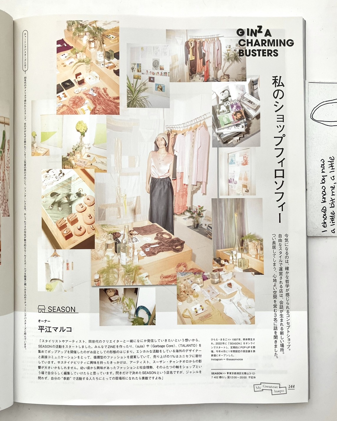 GINZA CHARMING BUSTERS「私のショップフィロソフィー」にて、ユニークなショップさんたちと並び、SEASONも登場しています。