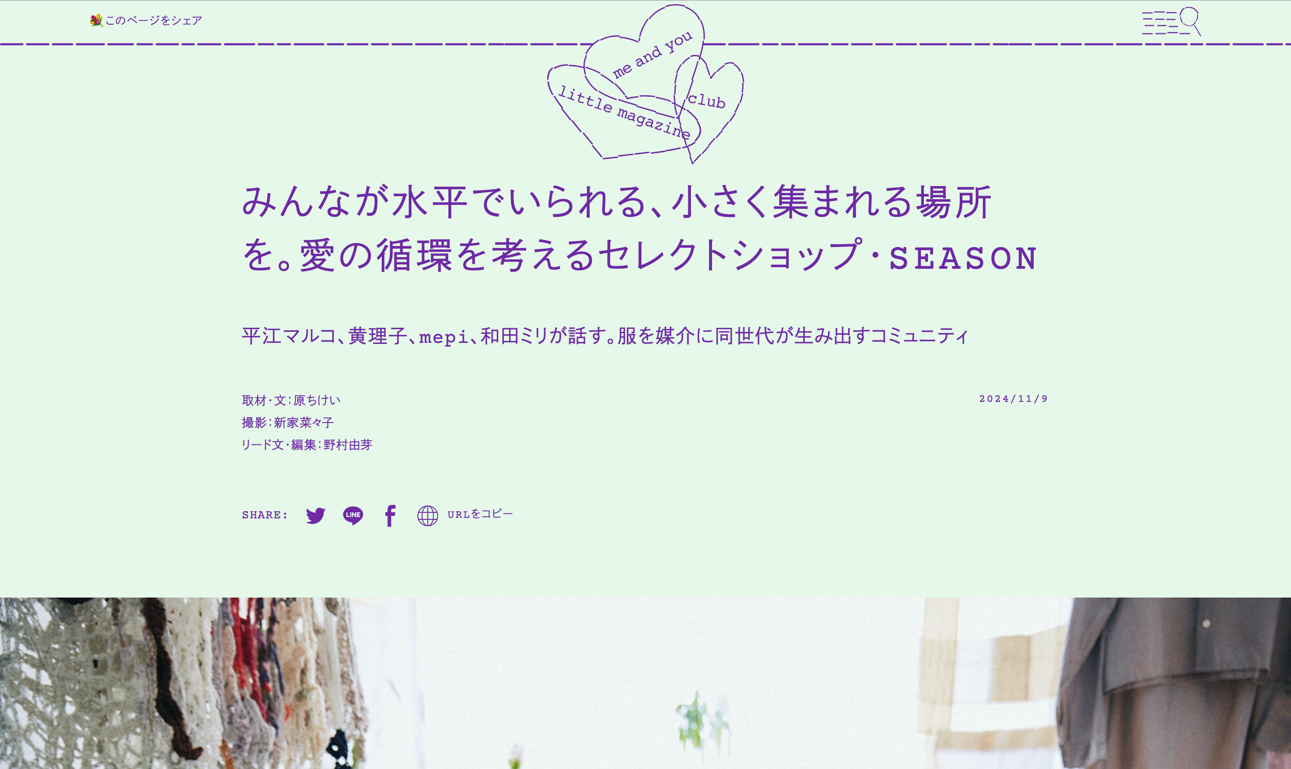 me and you little magazine club にて、SEASONを取材していただいた記事が公開されました!