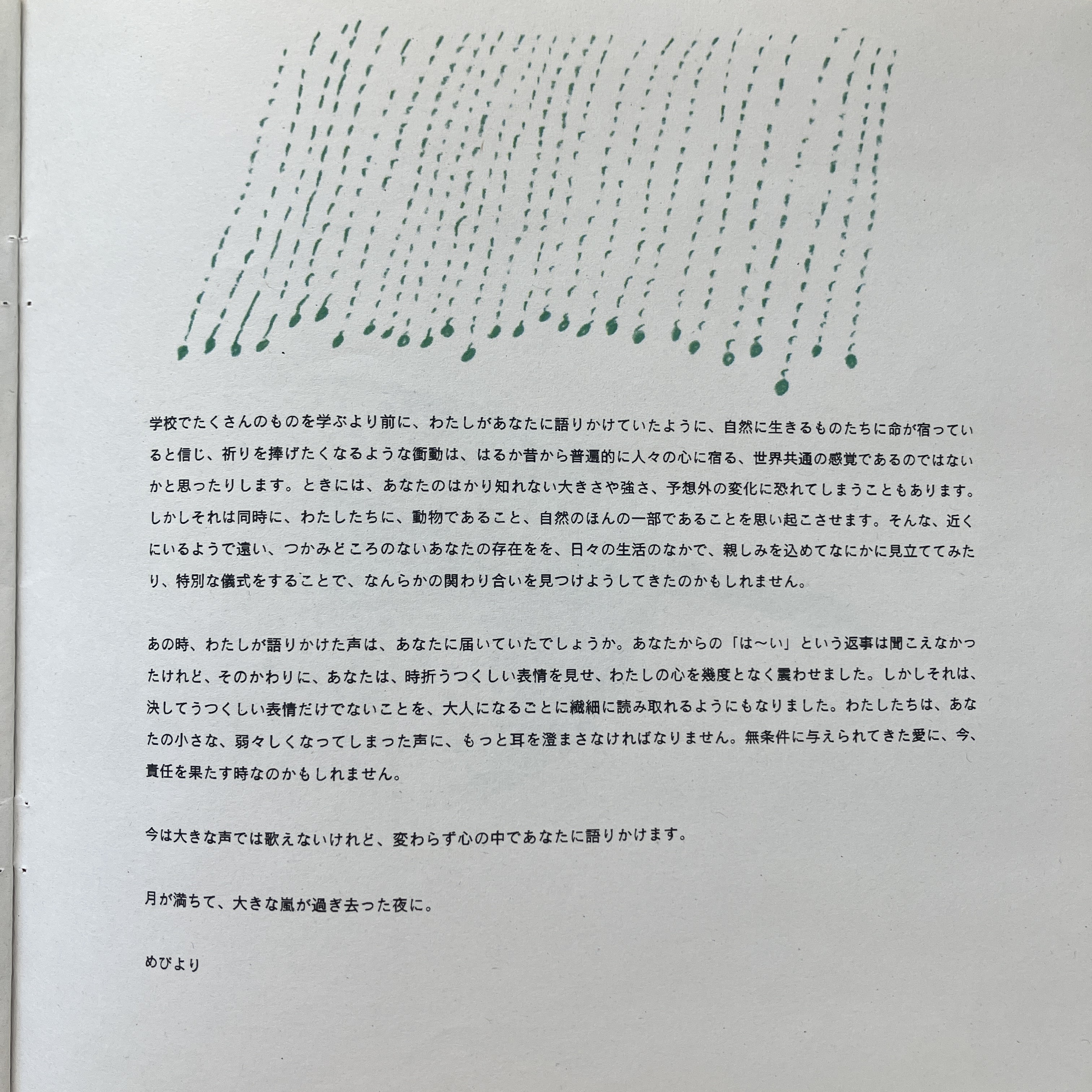 最後に、カレンダーが今年も大好評だっためぴさんが以前seasonの小さなZINEのために書き下ろしてくれた大好きなエッセイをまたご紹介します。