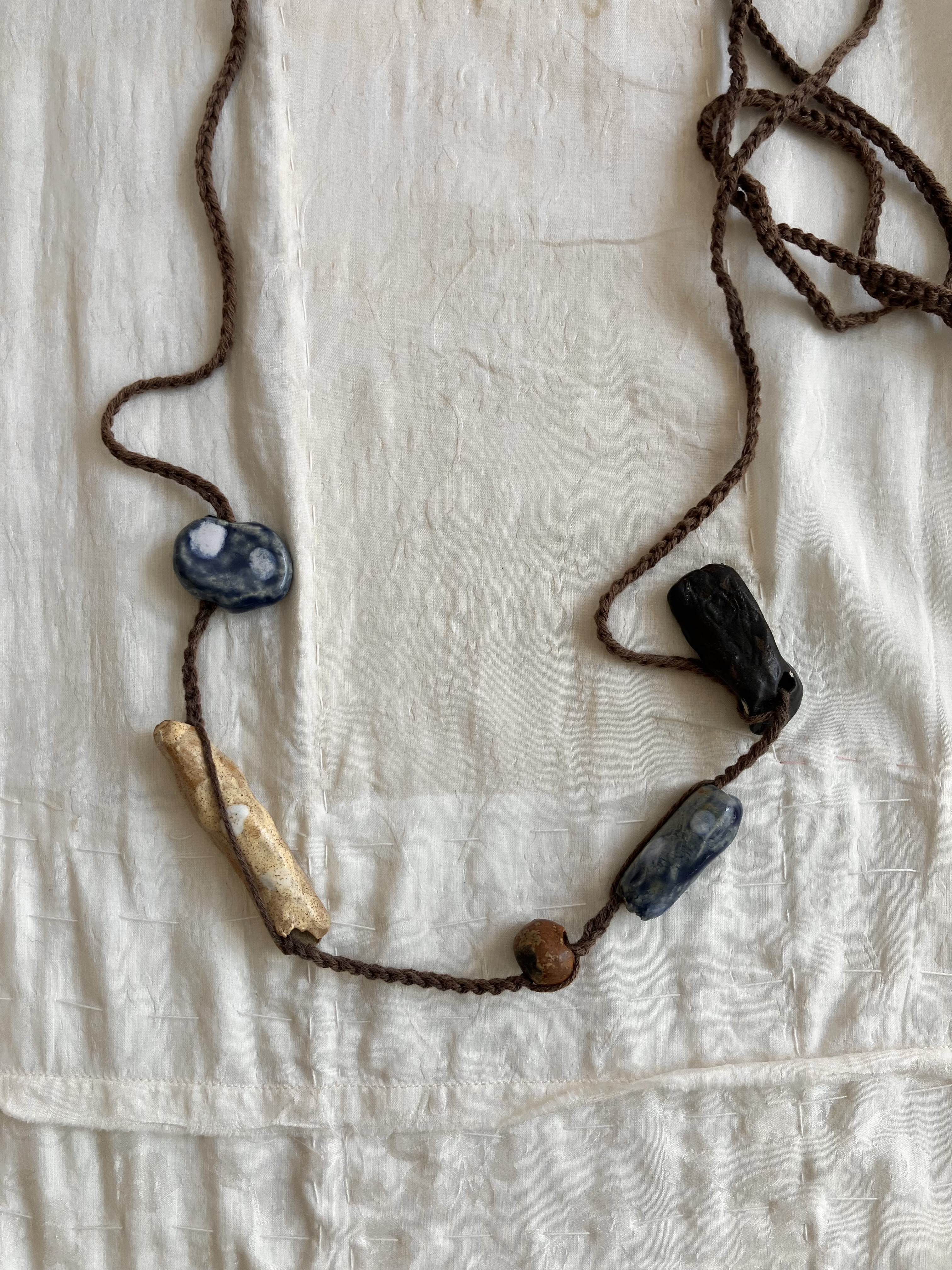 AZURの服を着ると、everyone’s motherのbuoy beltを組み合わせたくなります。。海のイメージがあるからでしょうか。腰に巻いている貝殻がbuoy beltです。