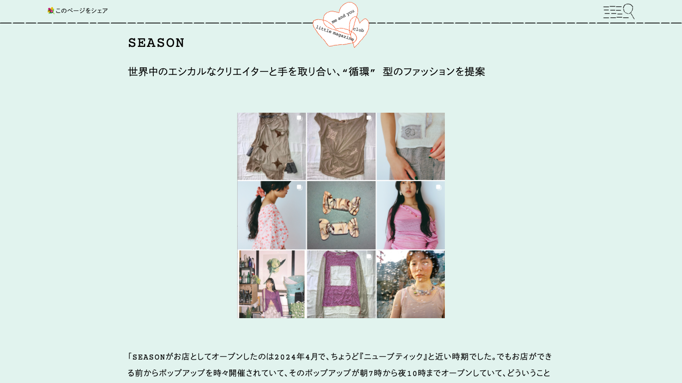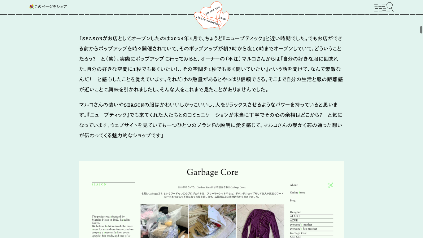 me and you にてリリースされたイベントレポートの記事で、集まった5つのショップの詳細とともに、再度ご紹介いただきました!
