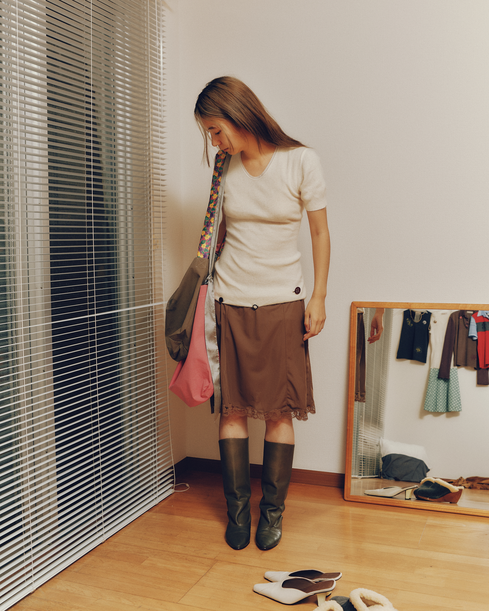 傷、シミ、穴などの欠陥は、その服の「魂」としてそのまま残されていることがあります。その欠陥の中から、過去の生活の痕跡を見出しています。