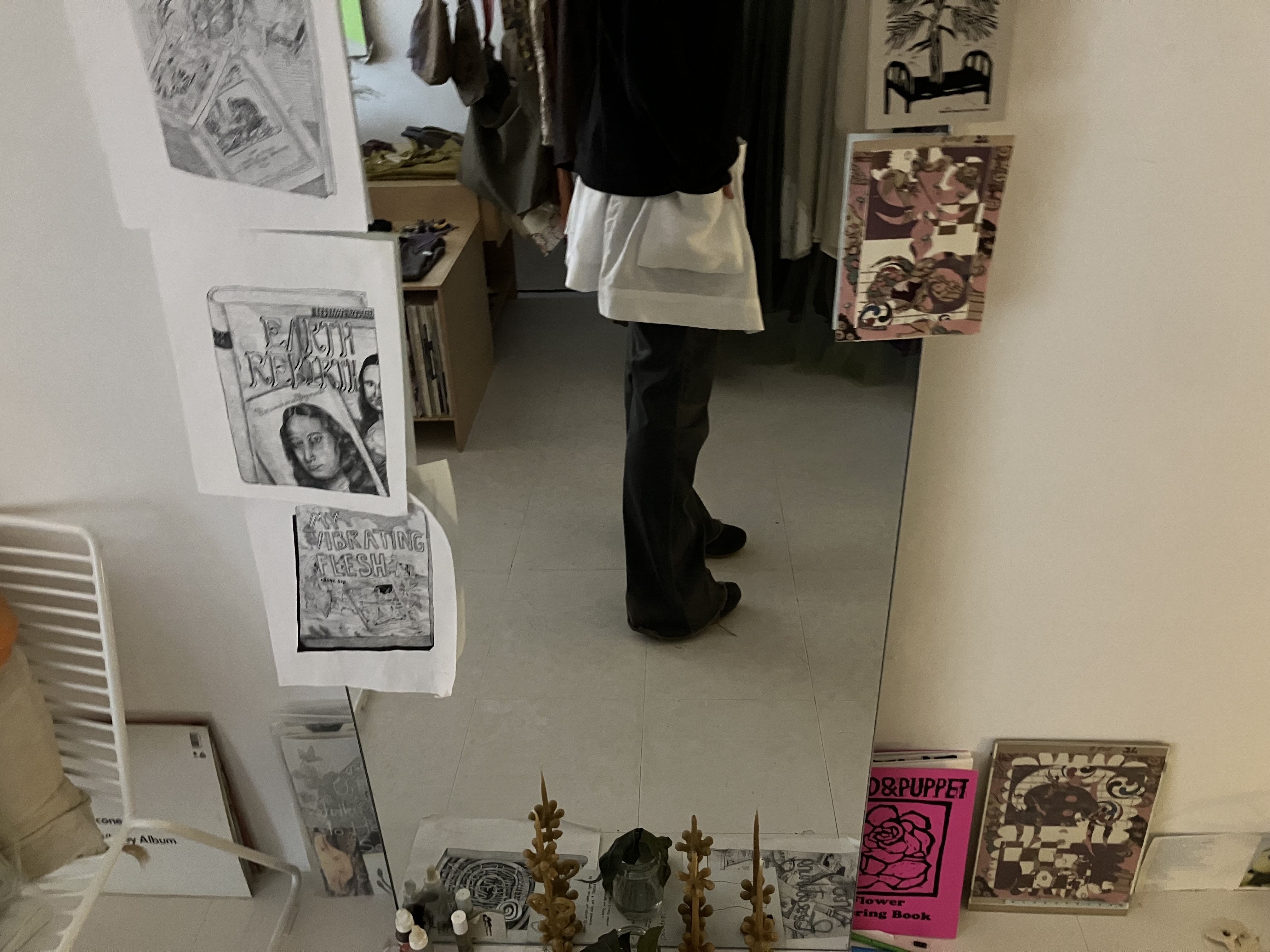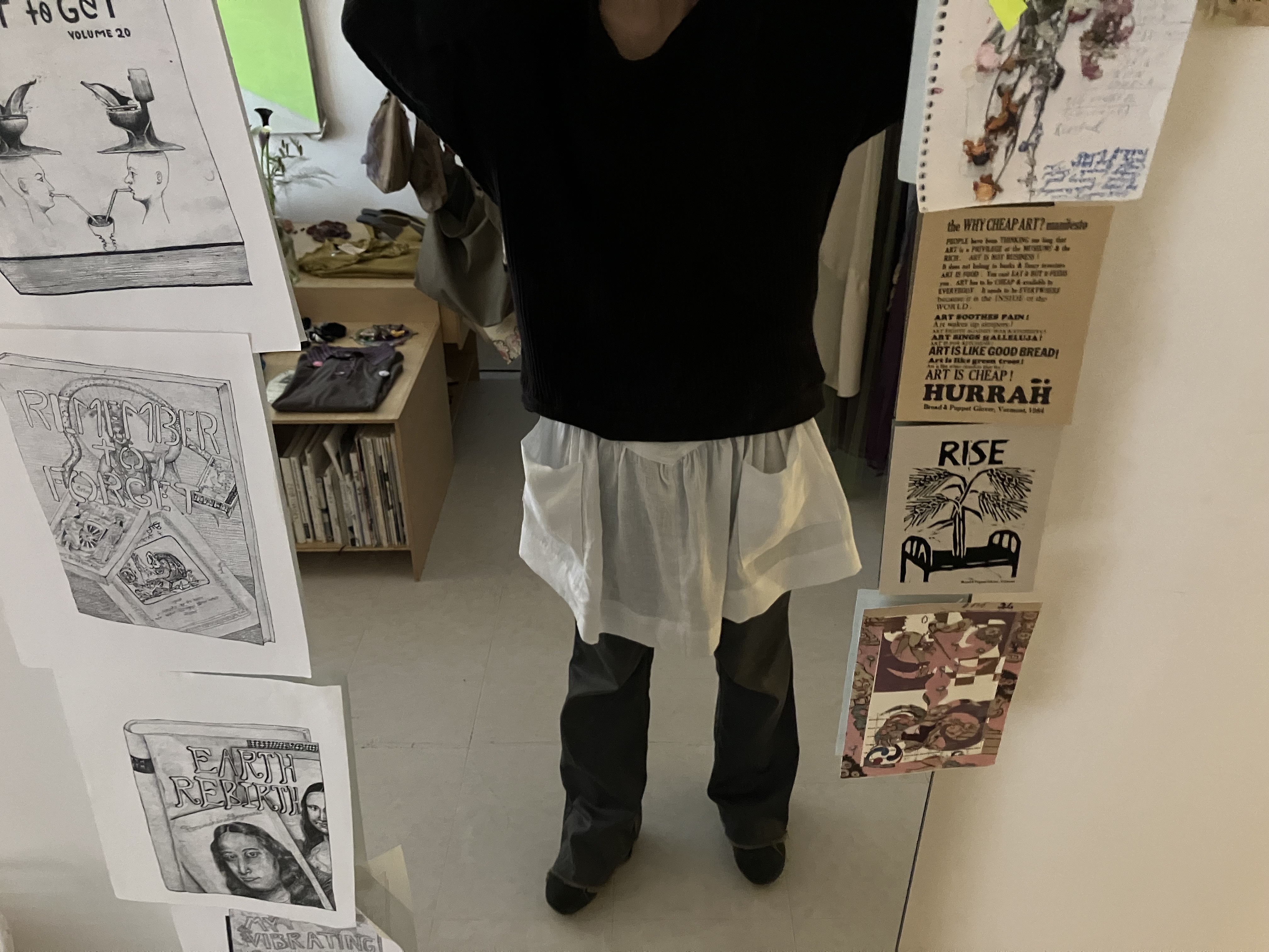 着すぎて色褪せたベースレンジのリブのスウェットと、︎ everyone’s mother の mini garden skirt 、DESPERATE LIVINGで買ったいつものデニムに、7センチヒールのサボで身長をかさましして170センチになりました。