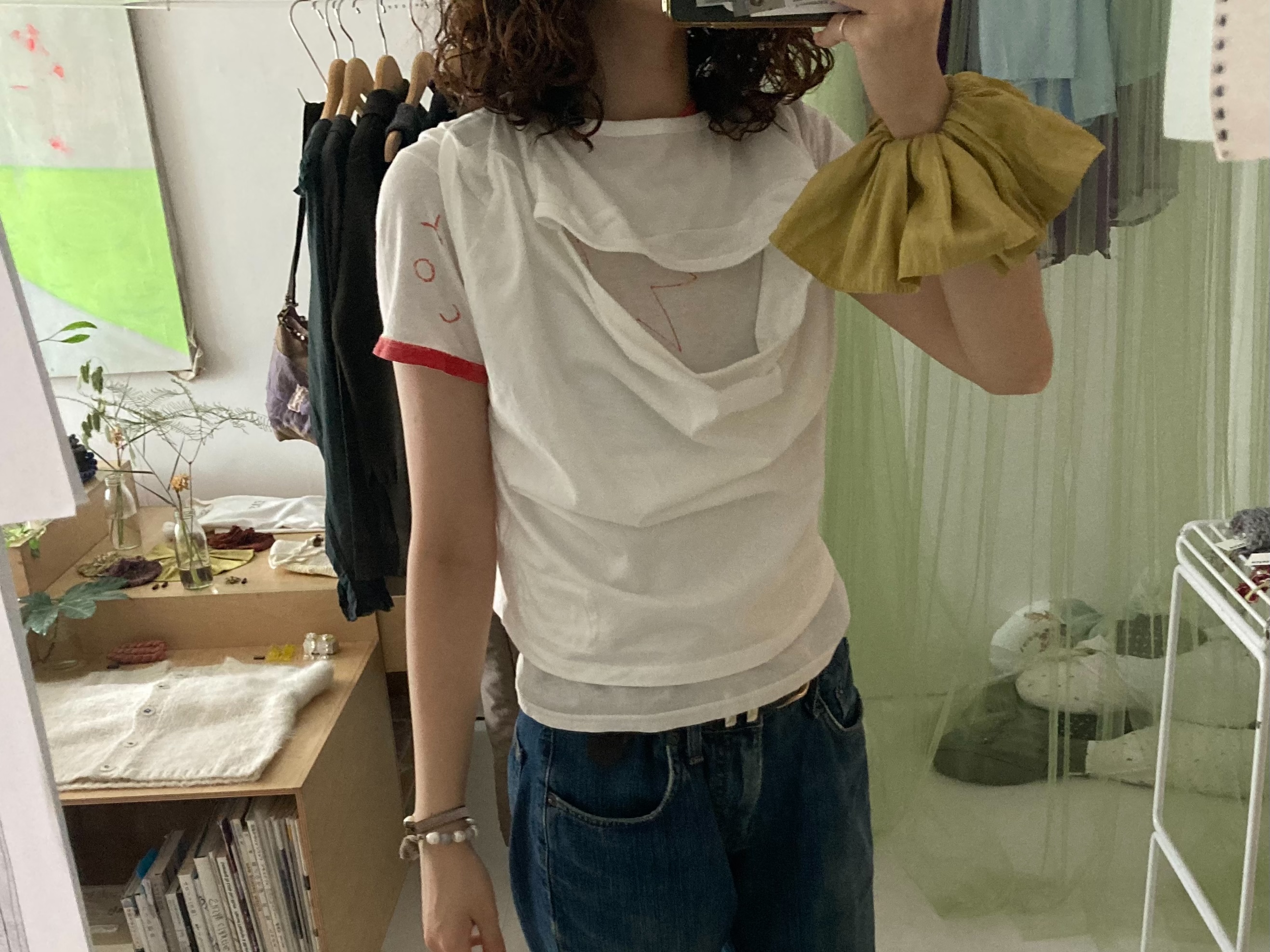 すっかり秋ですがまだ半袖が気持ちいい気候ですね。自分の夏の定番装いにはちょっぴり飽きてしまう時期。デニムにTシャツは私の定番スタイリングではありますが、今年の夏はまだ一回も着ていなかった、マッキーでお絵描きしたTシャツを久しぶりに着てみました!