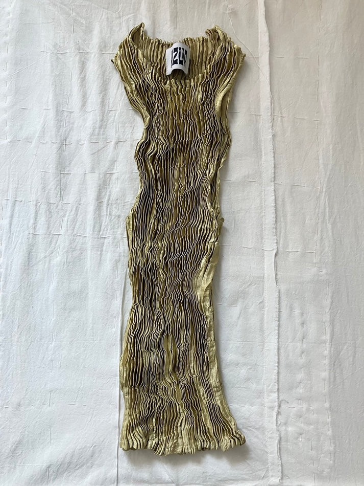 今お店には3色のカラーがありまして、着て、くるくるして、着て、くるくるして、という繰り返しでとってもいとおしく着れる、ハンドプリーツのお洋服です。